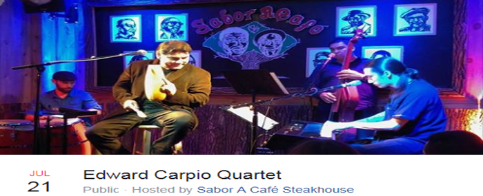 From romantic boleros to uptempo salsa and Latin jazz, vocalist Edward Carpio is one of the most entertaining singers in the business. Sabor a Café is proud to present this great singer in an intimate quartet format.