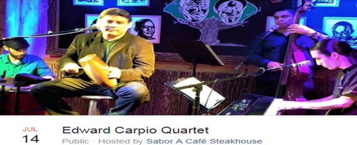 From romantic boleros to uptempo salsa and Latin jazz, vocalist Edward Carpio is one of the most entertaining singers in the business. Sabor a Café is proud to present this great singer in an intimate quartet format.