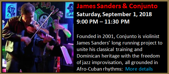 Founded in 2001, Conjunto is violinist James Sanders’ long running project to unite his classical training and Dominican heritage with the freedom of jazz improvisation, all grounded in Afro-Cuban rhythms: rumba, son, danzón and more.