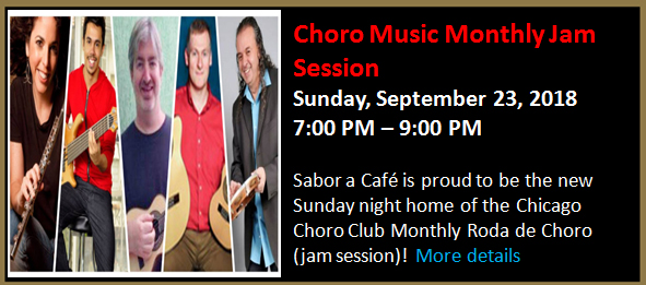 Sabor a Café is proud to be the Sunday night home of the Chicago Choro Club Monthly Roda de Choro (jam session)!