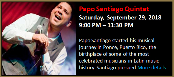 From romantic boleros to uptempo salsa and Latin jazz, vocalist Edward Carpio is one of the most entertaining singers in the business. Sabor a Café is proud to present this great singer in an intimate quartet format.