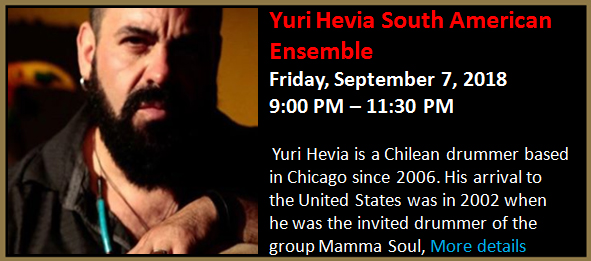Yuri Hevia is a Chilean drummer based in Chicago since 2006. His arrival to the United States was in 2002 when he was the invited drummer of the group Mamma Soul, who were nominated that year for the Latin Grammys.
